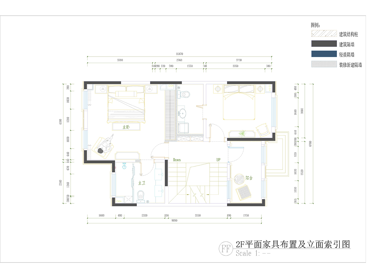 本案業主為年輕人,不喜歡過于復雜的家具,裝修風格以簡潔大方為主,整體色調上采用淺色調,使整個空間感覺更加明亮。業主居家辦公時間較多,在頂層臥室增加書房功能。