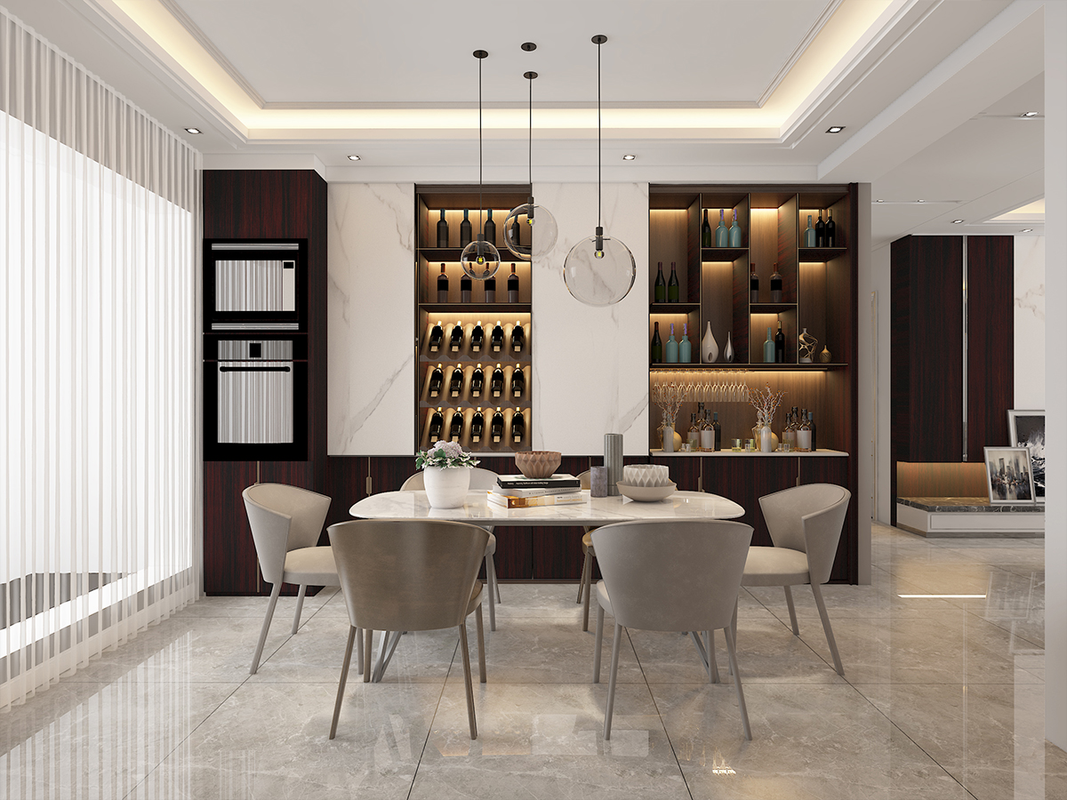 現代的黑白灰,給人沉寂的感覺。在繁華的都市生活中讓人的心靈上得到更好的慰藉。本案在色彩上采用無彩色為主,以黑白灰為主色。在光與影的體感中尋找空間的層次感