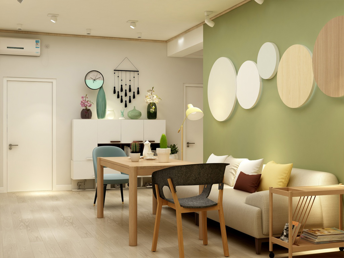 輕裝修重裝飾,所有空間靠軟裝來搭配,大膽的色彩搭配給視覺一點活潑的亮點