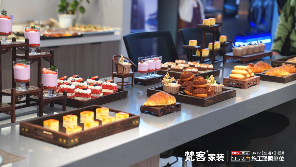 吧臺擺滿精致甜品,面點大師現場烘焙糕點,誘人的奶香味由二樓蔓延到一樓…