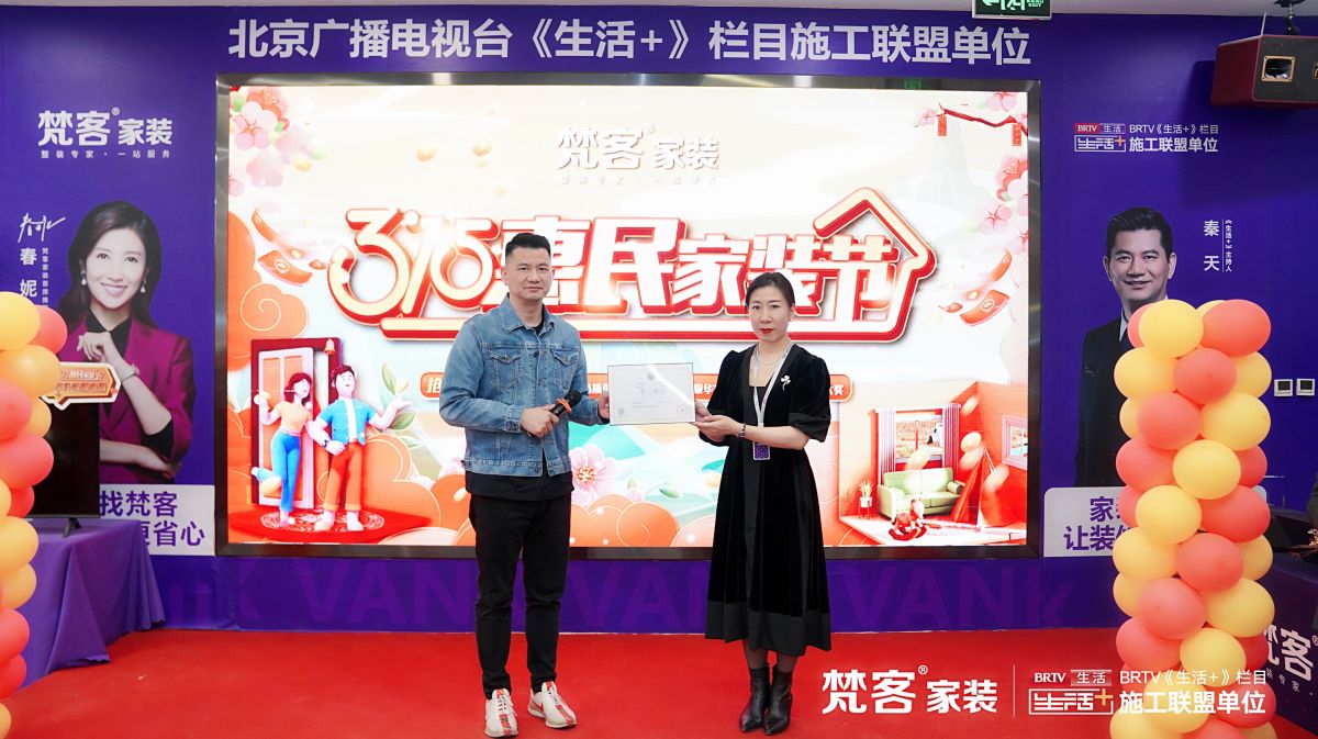 梵客集團副總裁、梵客家裝總經理任琳女士與北京廣播電視臺《生活+》欄目主持人秦天老師,一起為大家展示了這一殊榮。