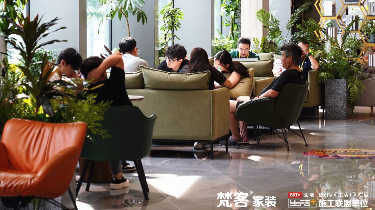 梵客家裝十里河店總面積達20000㎡,這里容納了洽談間、開放廳、接待室、咖啡吧、茶歇廳、露臺花園等,有22處美輪美奐網紅打卡地,其規模在京城首屈一指。
