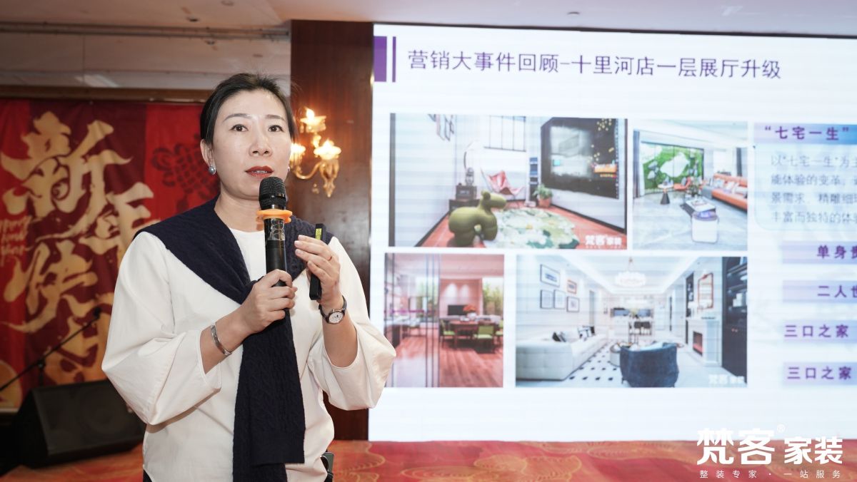 大會在梵客集團副總裁/梵客家裝總經理任琳女士的致辭下開幕。梵客家裝自去年年底至今年年初,經歷了一系列大動作,先后簽約演員王麗云、韓童生作為品牌推薦官,大大提升了品牌實力及影響力;十里河店店面也進行了全新升級,不僅融入七宅一生樣板間,家具、布藝、燈飾等軟裝區也重新規劃并引進新品,為用戶帶來更豐富多樣的選擇。梵客家裝成立十八年,深耕專業,在產品研發、店面改造、品牌宣傳等方面不斷探索、創新,只為給京城百姓帶來滿意的家裝服務,享受舒適美好的家居新生活。