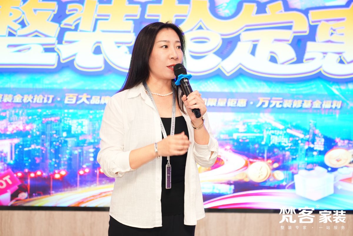 梵客集團副總裁/梵客家裝總經理任琳女士帶來的是F1臻享版優惠大禮包。該禮包自去年發布以來一直深受京城業主朋友的認可,其涵蓋了免費贈送項目、免費升級項目、折扣優惠項目等;還有專為老房設置的專屬項目;同時配備五星工程管家嚴格管控服務,AI云監理全程監管等;并送上透明家裝選配手冊(包括主材配置清單、輔材配置清單、一站式選配項目、省心裝修流程、特色工藝、服務承諾等),讓業主選購更安心,裝修更便捷!