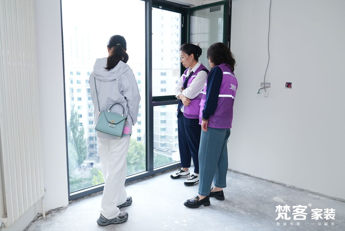梵客集團(tuán)副總裁、梵客家裝總經(jīng)理任琳巡視了每個(gè)房間,并勘察墻面、門套、五金等各處,每個(gè)細(xì)節(jié)都不放過,要求盡善盡美。