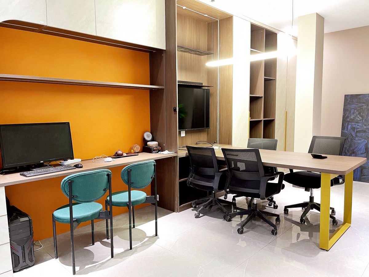 獨立洽談區(qū)及資深設(shè)計師工作室都設(shè)在1F,裝修風(fēng)格迥異、各具特色。落地窗收集著充足的光線,為業(yè)主提供了方便且舒適的溝通環(huán)境。即便是夜晚,也能感受到迷人月色。