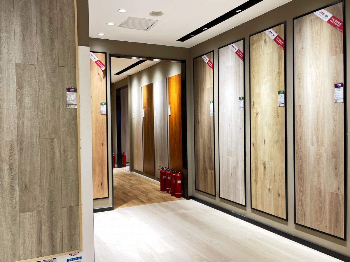 地板區(qū),展區(qū)的地板品質(zhì)高,突破傳統(tǒng)木材觸感,還原真實實木紋理及質(zhì)感,表面柔韌性好,踩上去腳感舒適。尺寸全面,還有適合別墅豪宅的大板,百種花色滿足不同生活品位及個性需求。