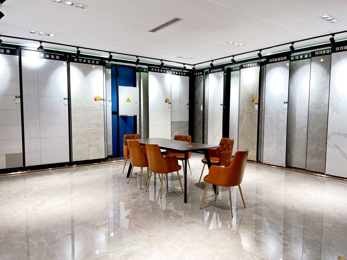 瓷磚區(qū),品類多,百款紋理、全套色系,還有適合大空間的大尺寸瓷磚,方便業(yè)主隨心暢選。