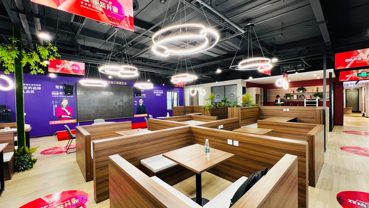 北大店的大廳在3F,這里也是最熱鬧活躍的區(qū)域,公司活動、客戶談單都在這里??臻g寬敞明亮,為業(yè)主朋友營造了良好的溝通氛圍。被隔成半開放式小間,又具有一定私密性,方便每家獨立溝通。