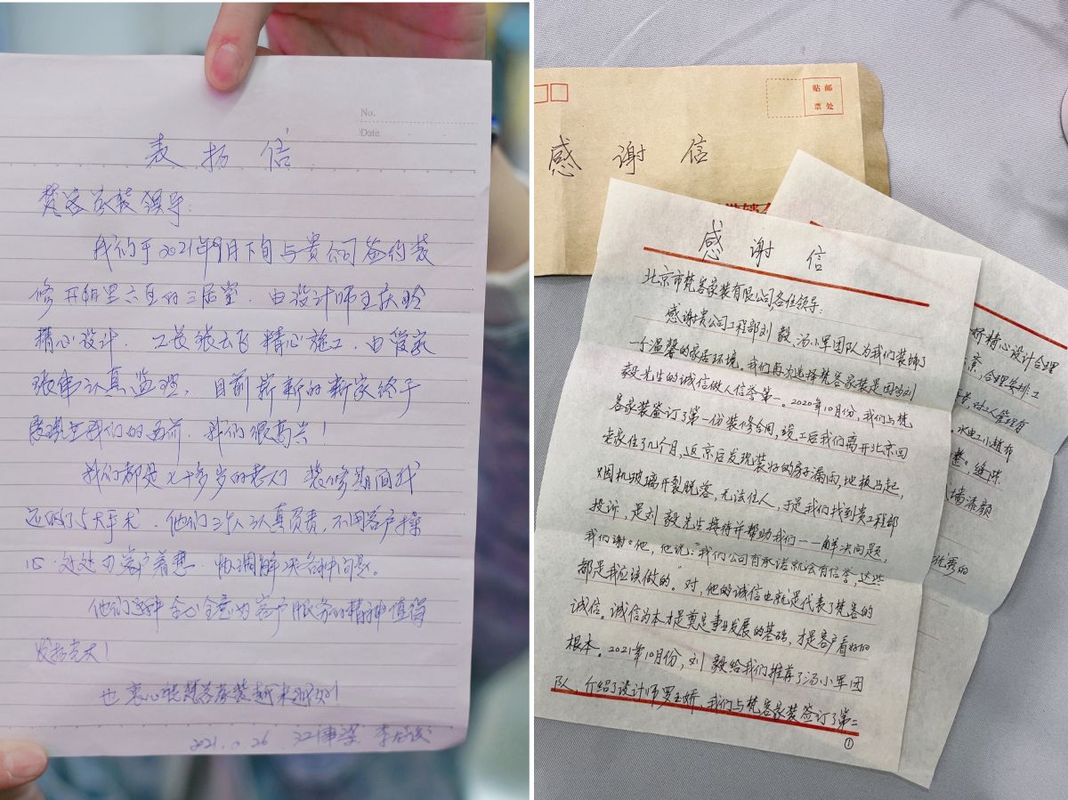 每個月都會收到業主朋友送的錦旗與感謝信…