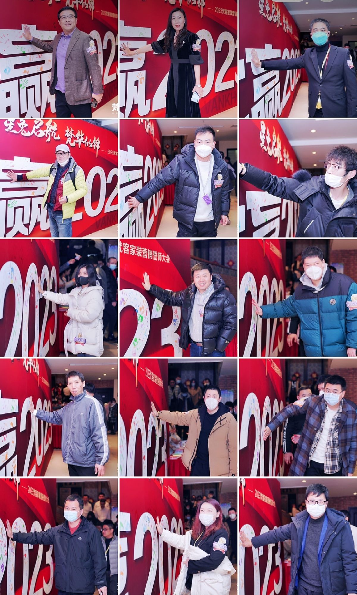 這是梵客家裝2023年首場大型會議,宴會廳現場,被熱情洋溢的中國紅點亮,營造出激勵人心的氛圍。以標語裝點的背景墻,更是抒寫了每位梵客勇士的心聲: