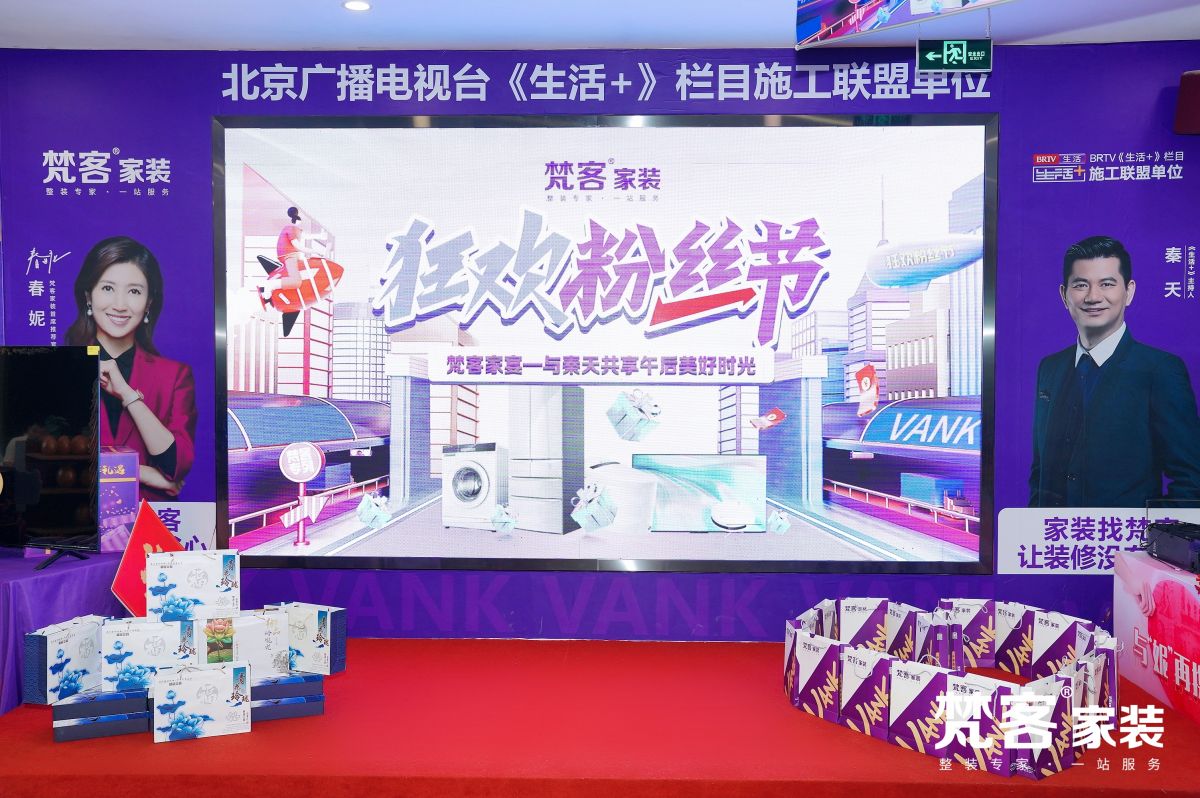 伴隨著秦天老師的到場,活動正式開始。秦天老師是北京廣播電視臺生活+欄目的主持人,也是梵客家裝的老朋友。在此次狂歡粉絲節,秦天老師專程來送福利—《生活+》施工聯盟協議。