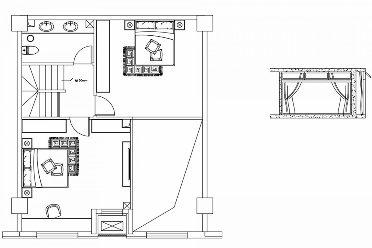 改造后,2層的功能區(qū)有:主臥,兒童房/書房,主衛(wèi)