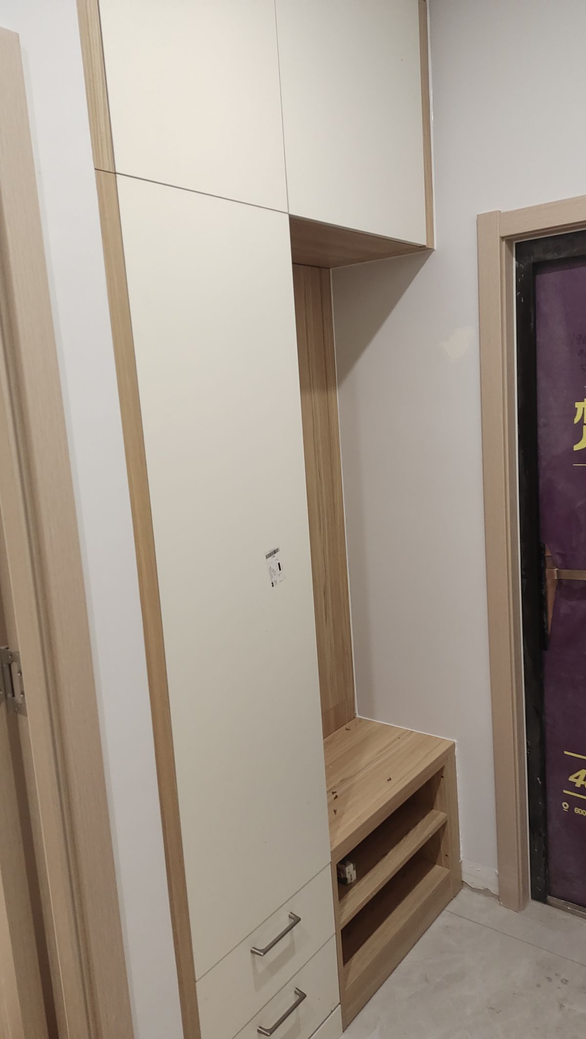 ↓ 這個(gè)收納柜是將衛(wèi)生間原有墻體外移后,與門廳玄關(guān)位齊平,增加的內(nèi)嵌式鞋柜。