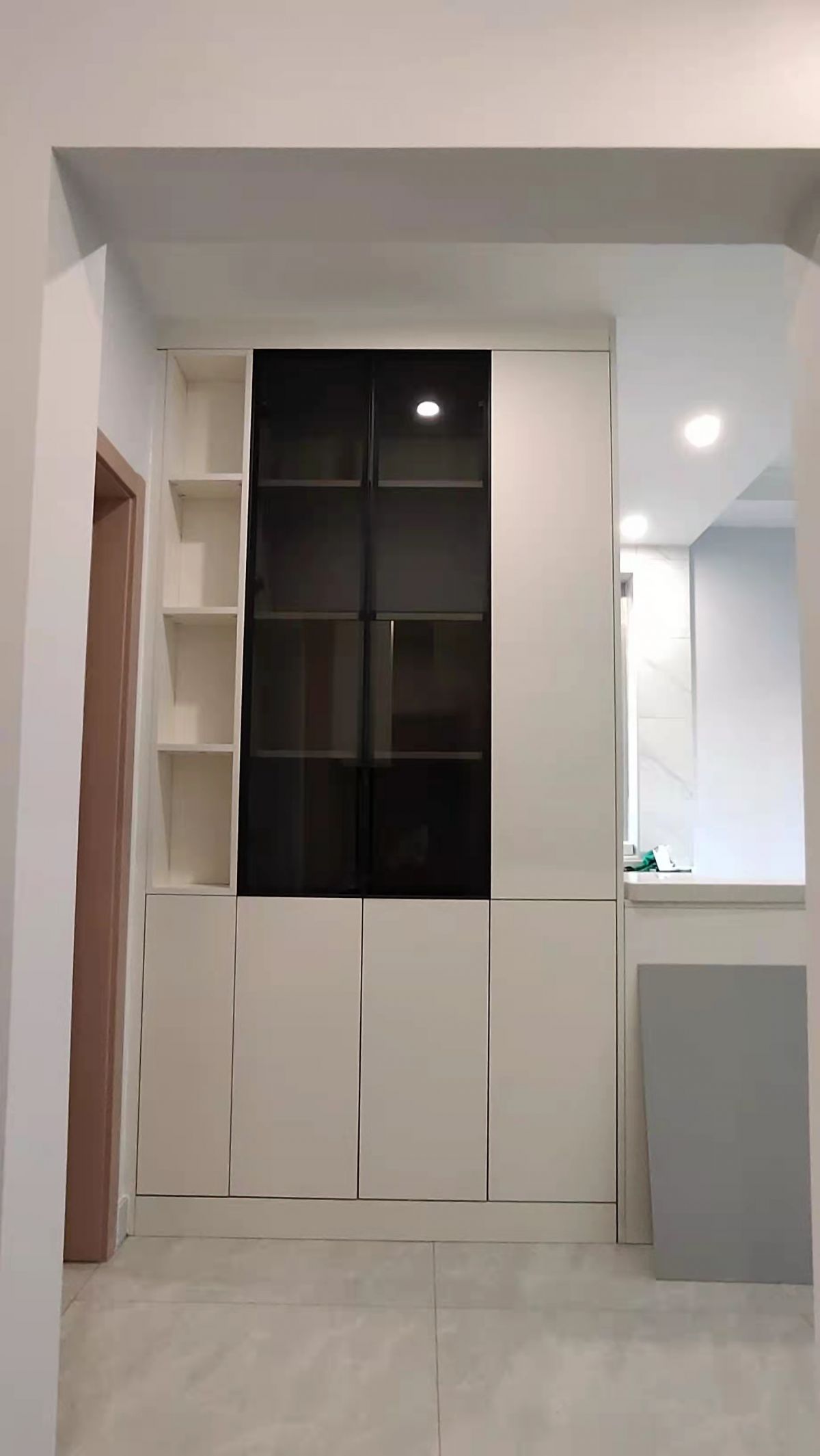 柜體、抽屜、擱板、掛鉤等多種收納方式,可以滿足業(yè)主多方面儲物需求。