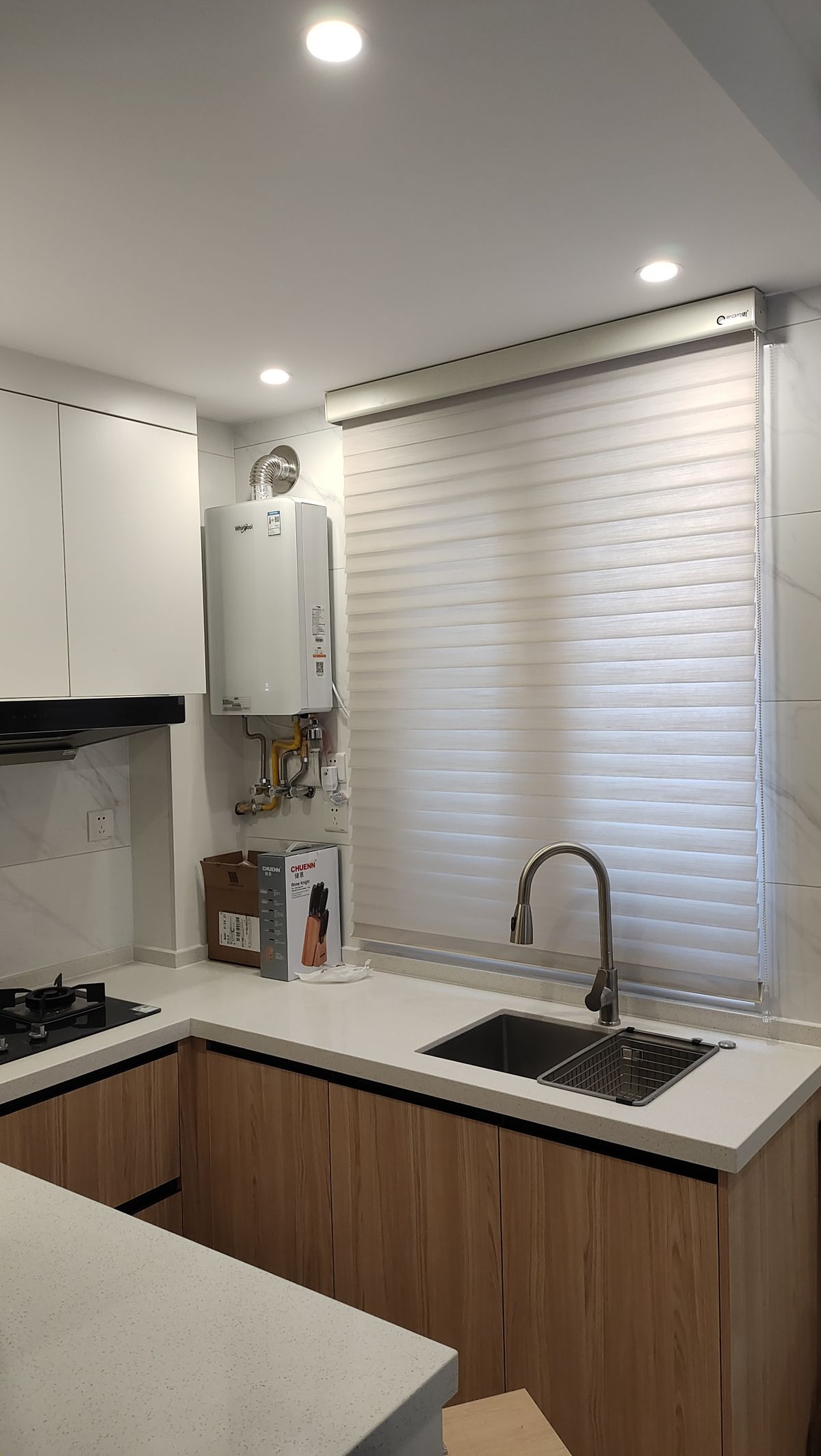 客餐廚,進(jìn)行了格局改造,原有廚房面積較小,將它打通,變成開放式空間,拓展視野,小區(qū)域變得更加通透明亮。