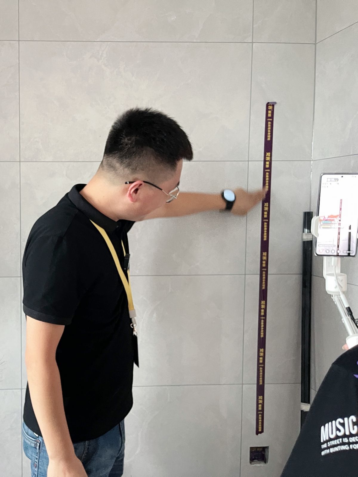 ↑ 衛生間的工藝,最重要的就是防水,梵客家裝對此有非常嚴格的驗收標準:滿刷1.8米高。如果隔壁空間緊挨墻的是收納柜,衛生間防水會刷到頂。