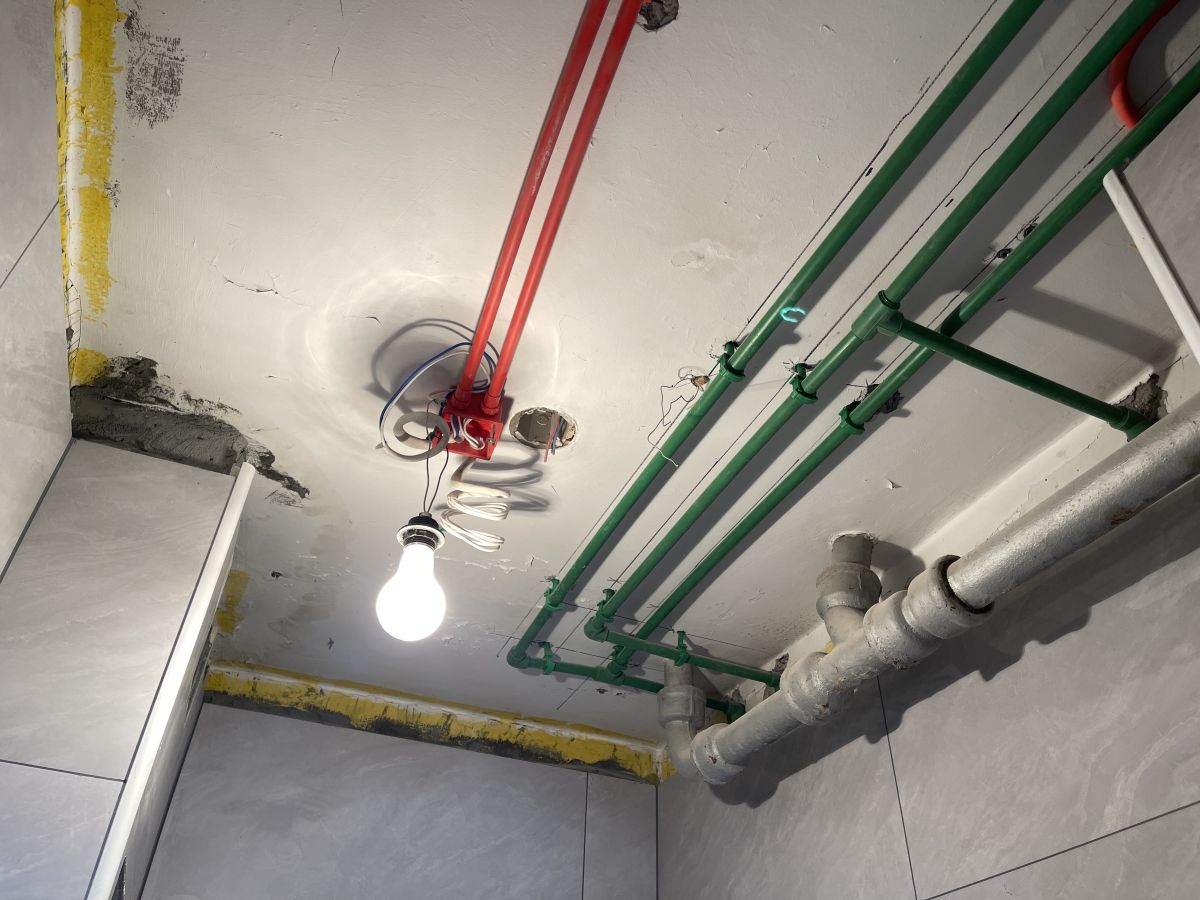 ↓ 走線遵循橫平豎直的規范,開槽要固定好,排列整齊,確保電上水下,嚴禁水電同槽。線頭必須包頭打卷。