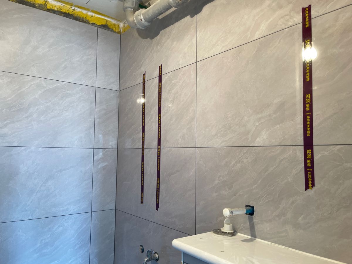 廚房、衛生間的墻磚都采用薄貼工藝。薄貼法采用“瓷磚黏結劑”,強度更高,黏結性是傳統砂漿的3-4倍,兌水即可使用,不需現場配比水泥砂漿,不需要做拉毛處理,薄貼厚度只需3-5毫米,更安全穩固,空鼓率低,一天可鋪貼20平米,施工效率大大提高。