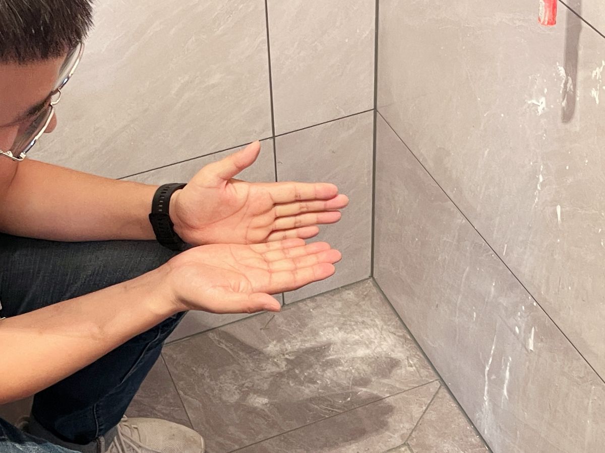↓ 墻面、地面接壤處,必須是墻磚壓地磚,也是為了排水到地漏更方便。反之,地磚壓墻磚,水很有可能堆積在縫隙處,或流到防水層,加速其老化。