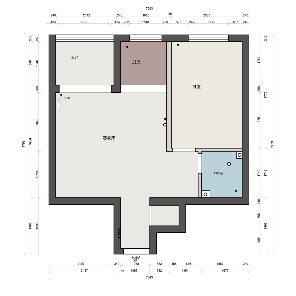 1室1廳1廚1衛(wèi) → 2室1廳1廚1衛(wèi)